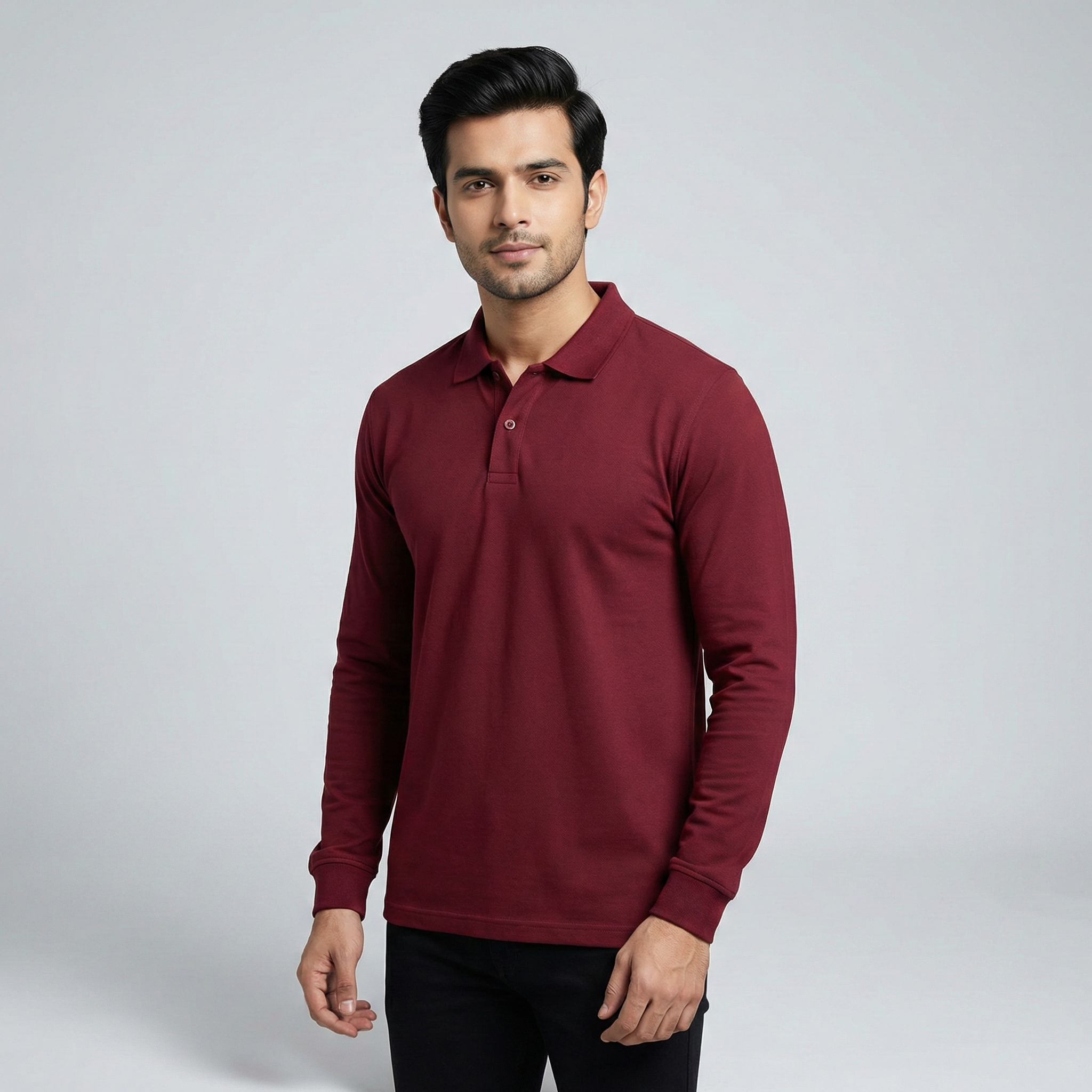 Elevate your smart-casual collection with our premium Men’s Full Sleeve Polo T-Shirt, crafted from 100% Cotton Airtex / Pique fabric for superior breathability, durability, and structured comfort. Designed with a classic polo collar, button placket, and full-length sleeves, this style offers a refined look suitable for both work and casual wear.